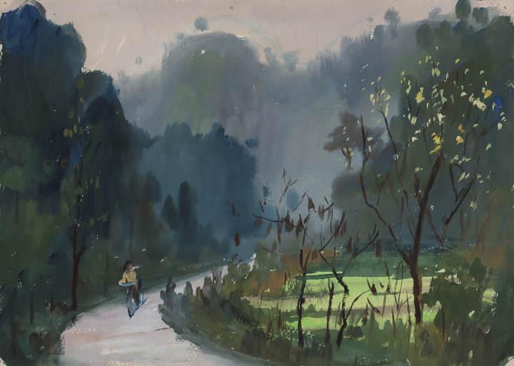 林间小径 潘长臻 水彩画 31cm×43.5cm 2008