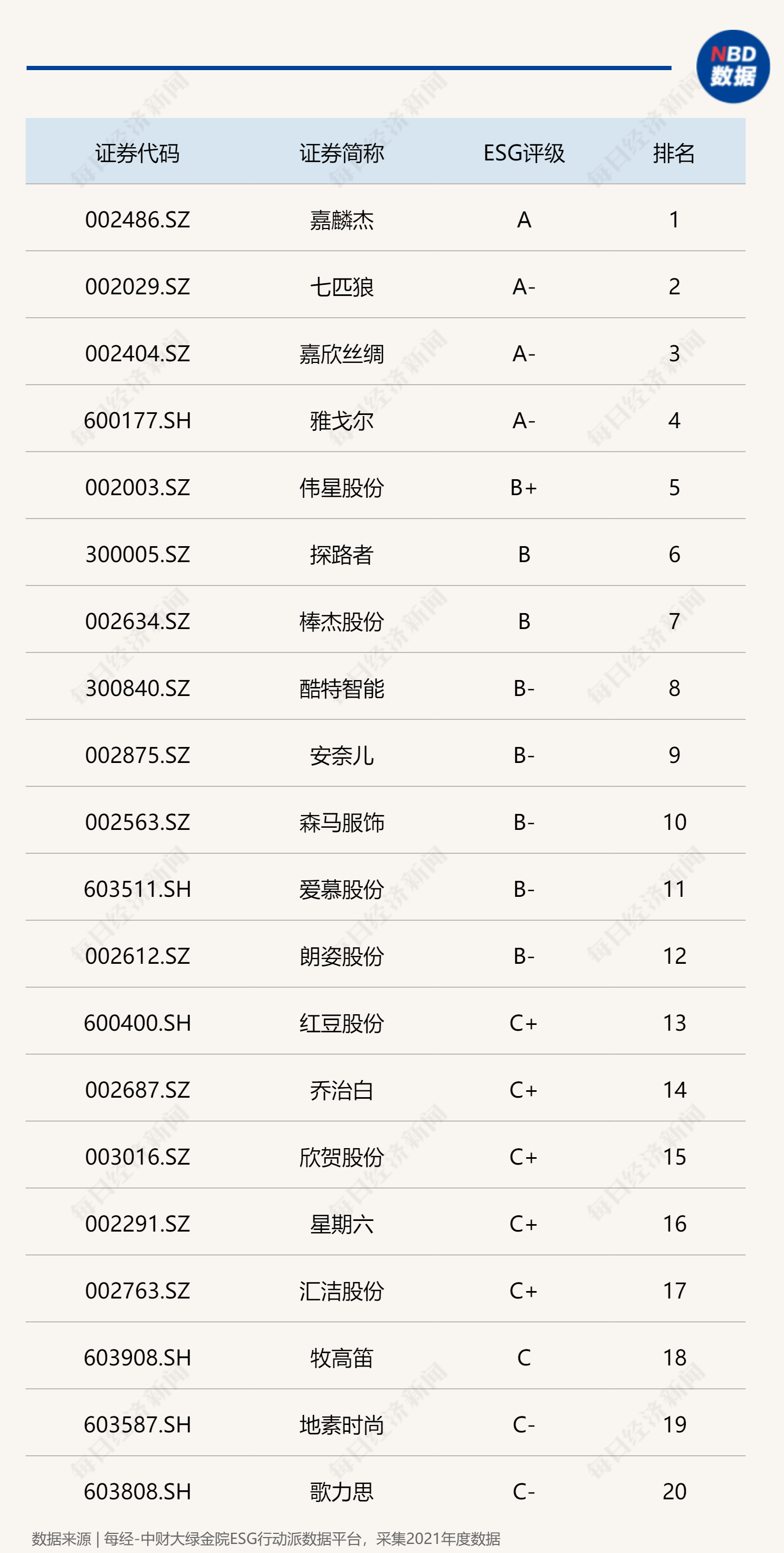 本期ESG读榜聚焦服装服饰行业ESG评级TOP20,分析上榜企业的特点和评级表现。