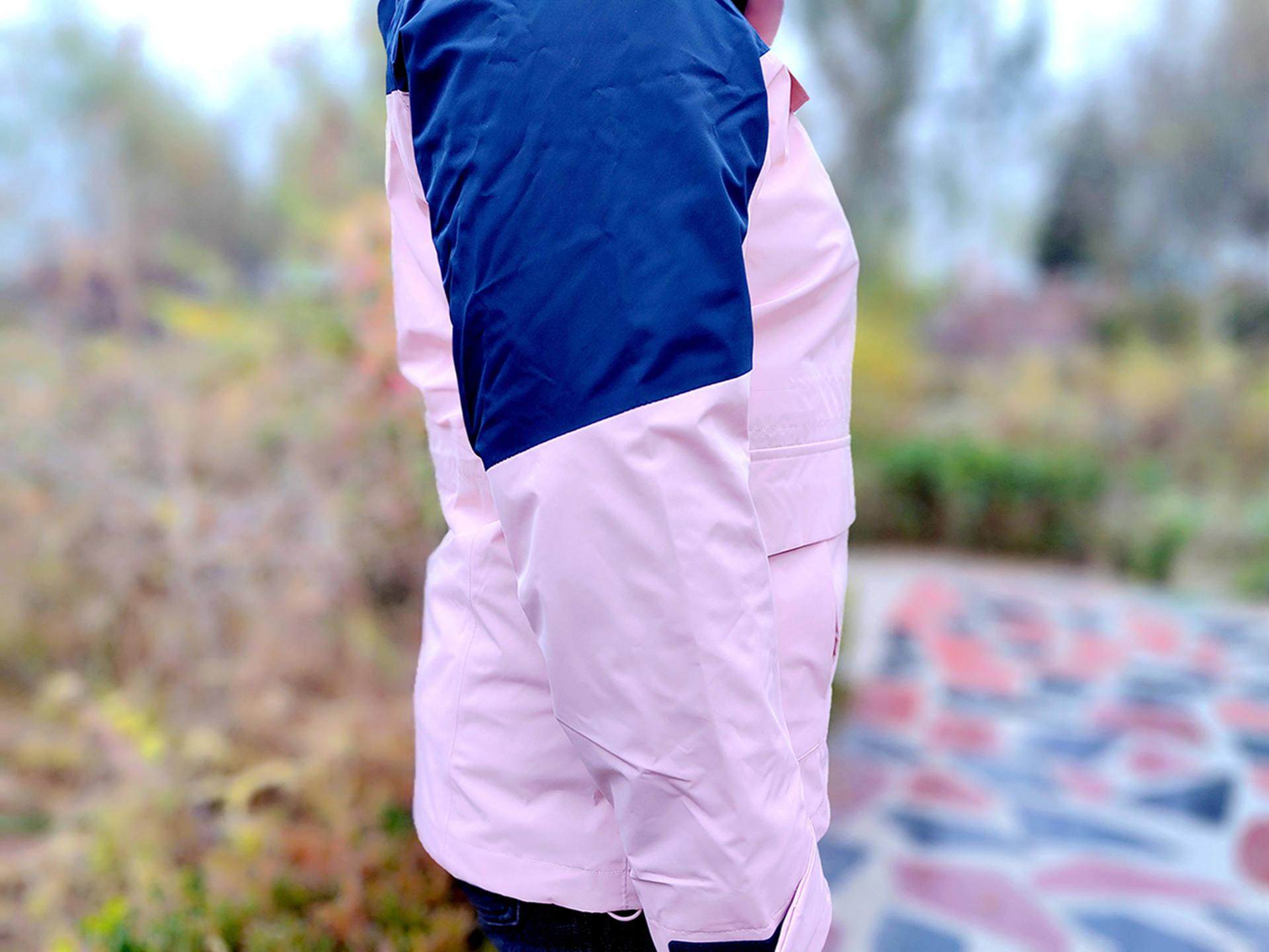 在冲锋衣的细节处理上,这款冲锋衣的做工还是很到位的,立体裁剪设计,衣服版型可以很好地贴合身体曲线,穿起来舒适又不会显得有束缚之感。尤其是在户外进行运动时穿上它同样可以做到灵活的运动。