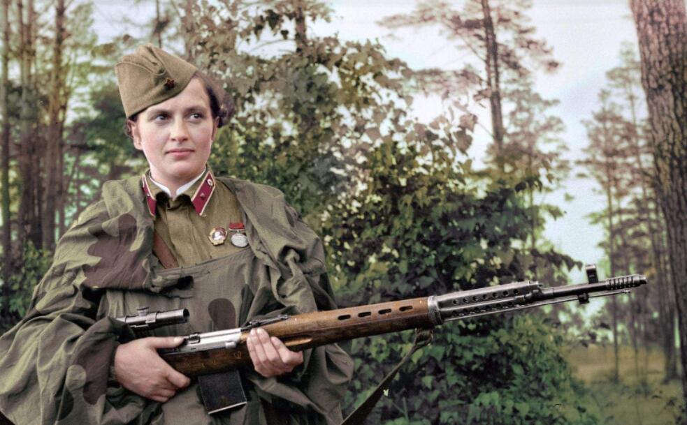 言归正题,虽然苏联女兵是穿着裙子上战场,而且也没有受过严格的训练,但令人意外的是,苏联女兵的战斗力相当强,在某些方面甚至比男兵还出色。在卫国战争中,不论是狙击手、机枪手,还是火炮手、坦克兵、飞行员和水兵,各条战线,各个兵种,都有苏联女兵的身影。整个战争中,一共有40万女兵牺牲在了战场上,有20万人获得了“苏联英雄”的称号及各种功勋奖章。比如说的苏联女狙击手柳德米拉 帕夫米琴科,她在战争中一共击毙了309名敌人,荣获“苏联英雄”称号。而她只是这些“铿锵玫瑰”中的一朵。自1943年起,苏军建立了专门的狙击部队,负责狙杀德军的军官、通讯员以及那些零星出没的士兵。而这其中女兵占了绝大部分。到1945年,这些女狙击手们一共击毙了近千名德军,取得了极其辉煌的战绩。