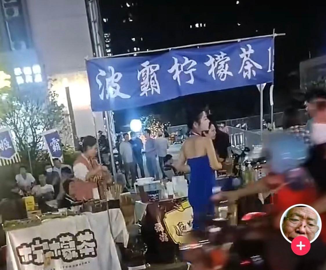 好身材加上大胆地穿着,“波霸柠檬茶”果然吸引一众目光,摊位前围的左三层右三层,有来喝柠檬茶的,也有来大饱眼福的。