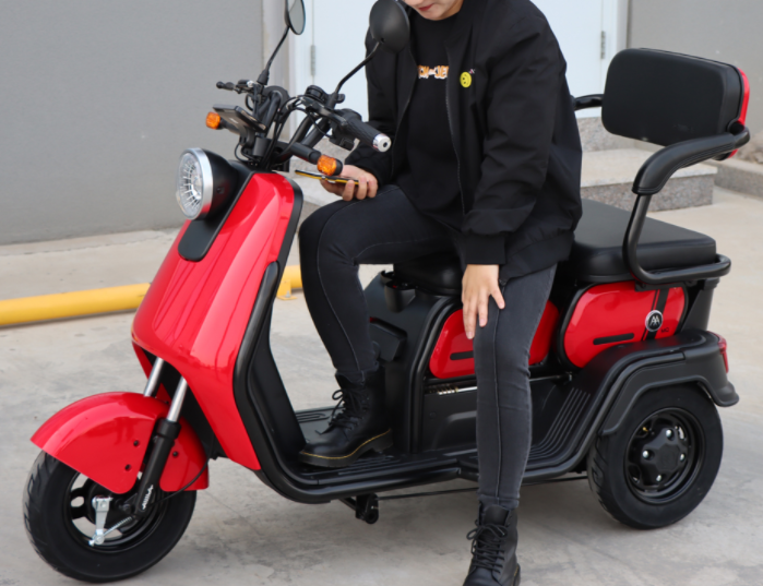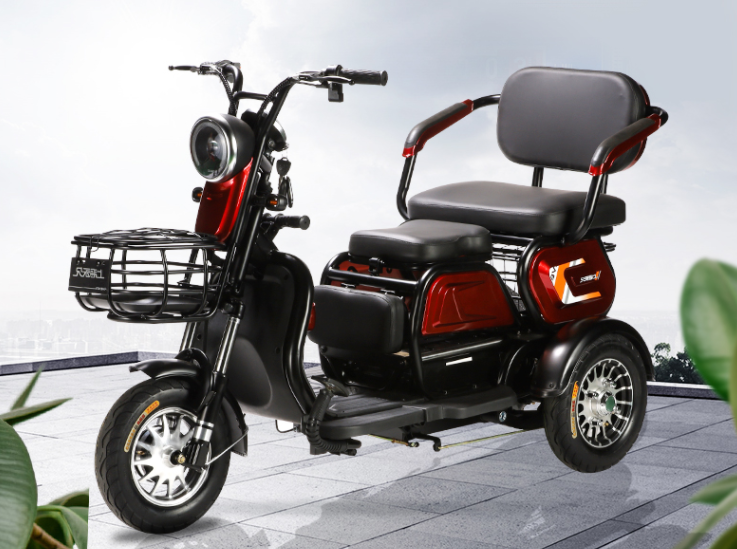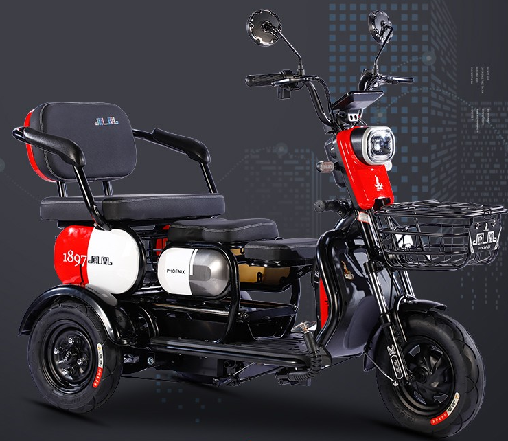 座椅可以前后调节,除开前方的幼儿座椅不算,可以实现两个成年人的乘坐,或者是调节成单人座椅方式,让后排座椅下方的空间留出来做后备箱使用。不论是老两口出行还是单人出门,都的方便实用。前后车筐的设计让它存储能力出色。转向灯和尾灯能让出行更。同时提供三档调速,以及儿童座椅和扶手。500w差速电机,高时速19公里/小时。载重300公斤,两个成年人完全没有任何问题。前大灯采用高亮的透镜LED光源,节能明亮。同时提供多款颜色可选择。