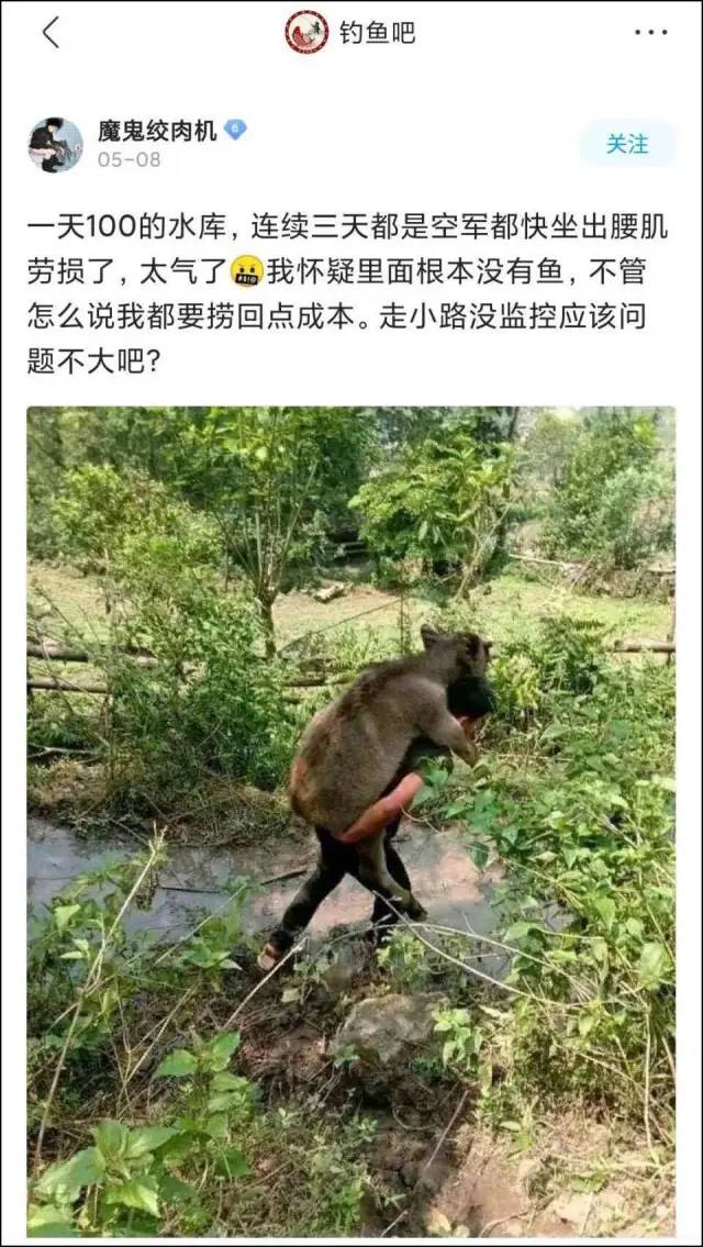 百度钓鱼吧160万粉丝,中国钓鱼协会统计,全国9000万人拥有鱼竿。“永不空军”的爱好者们,就算钓不到鱼也要钓点杂物,摘点瓜、搞点鸡鸭回去。