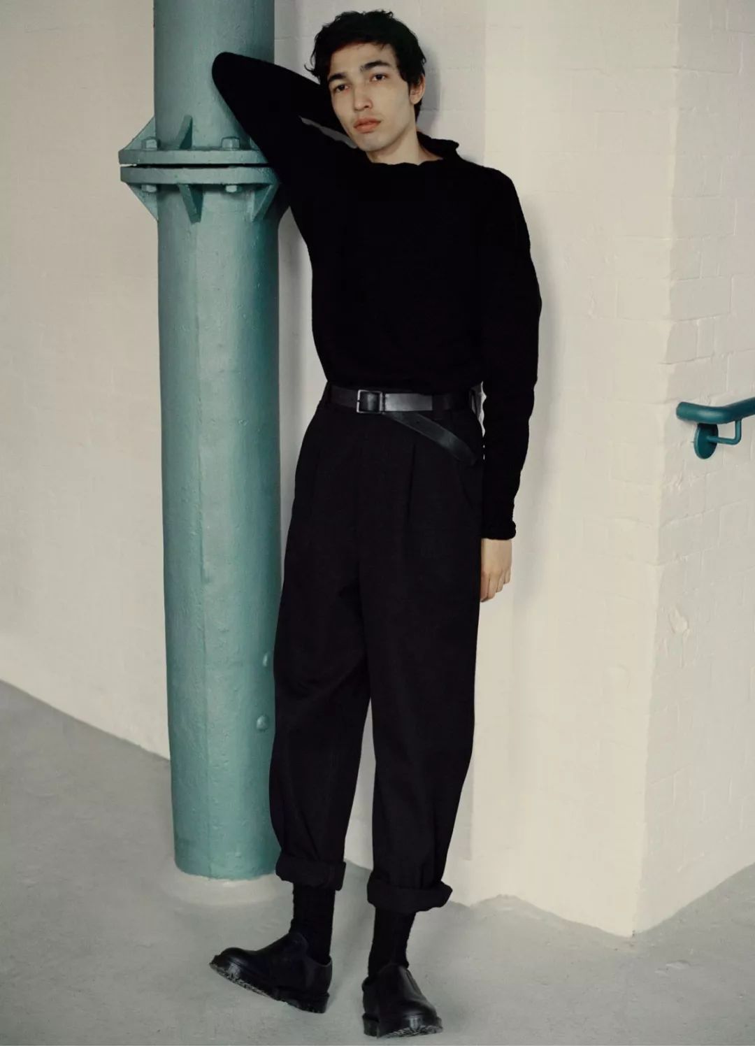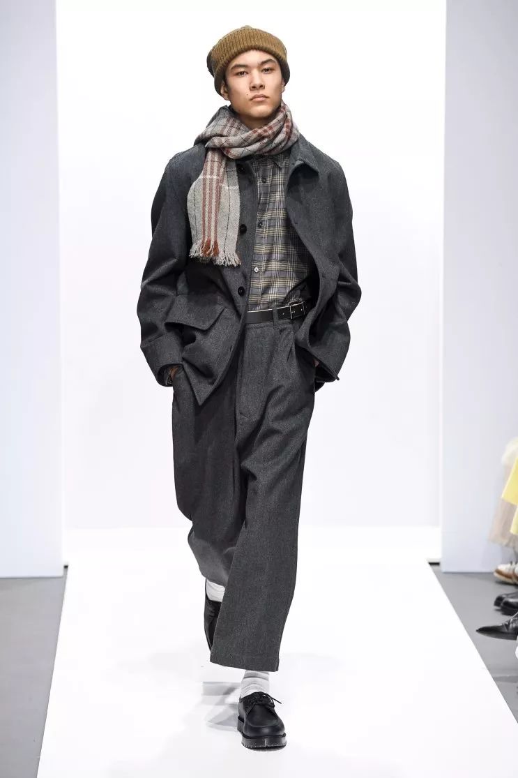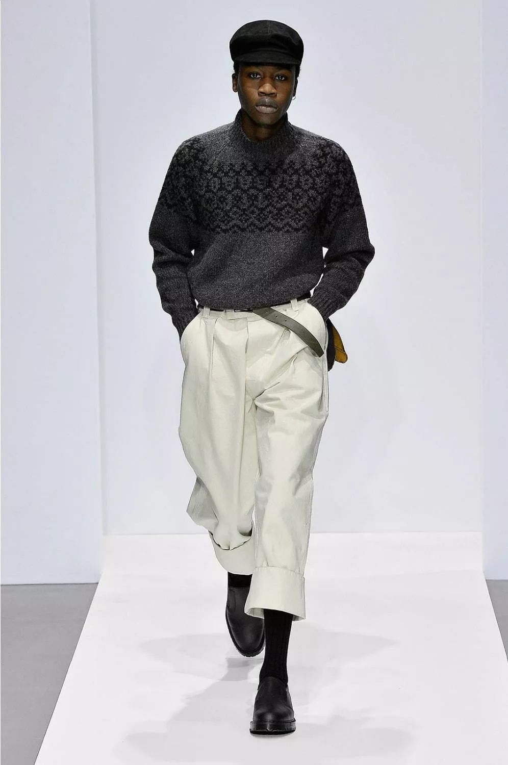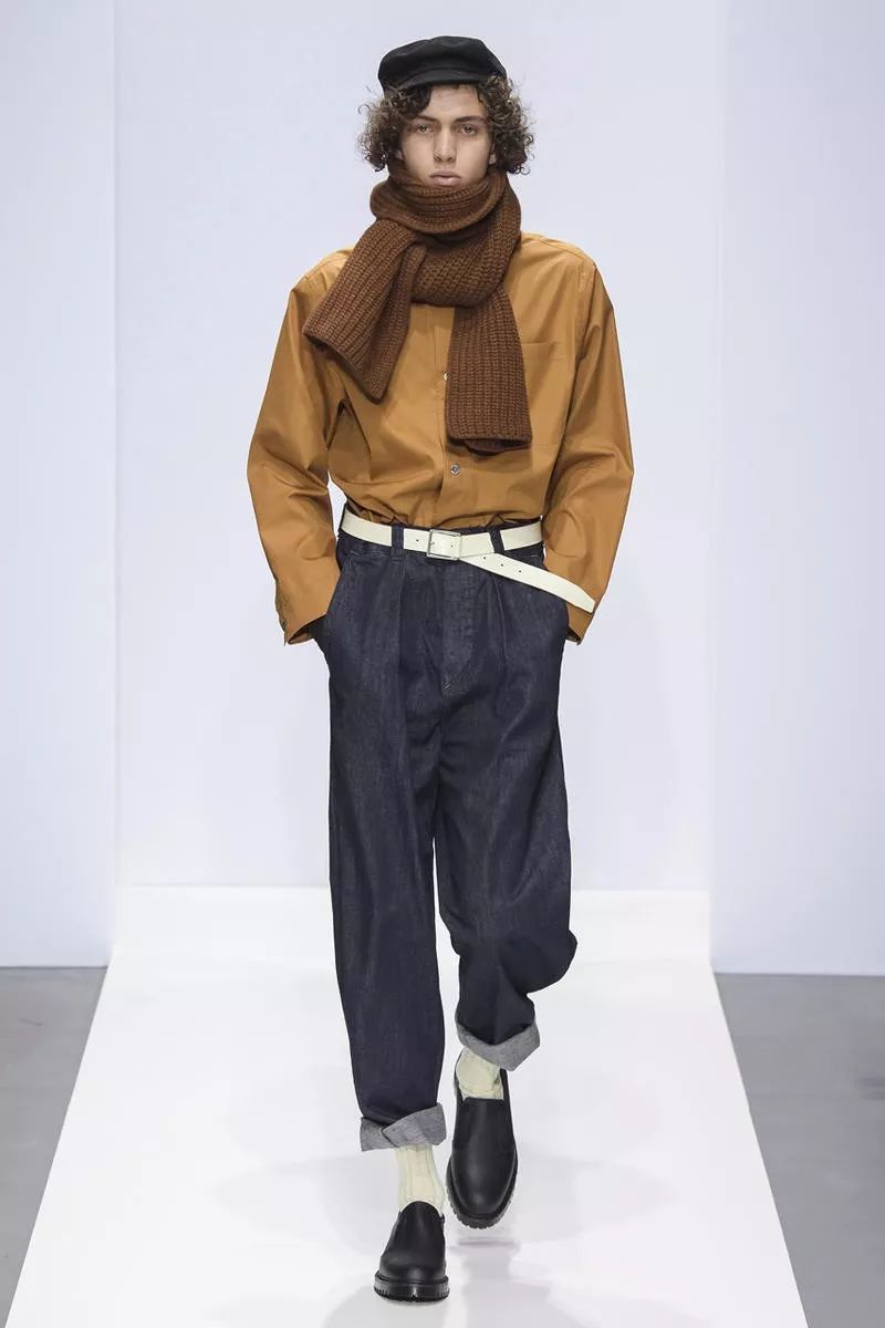 这不是单纯的觉得九分裤好看而已,设计师认为人性感的地方就在于脚踝,因此不管男女装,Margaret Howell 都会在脚部留出一定的距离空间来营造简约感和中性气质,上下整体有着轻松自由的制式风格,算不上太过高级,但也十分精彩别致。