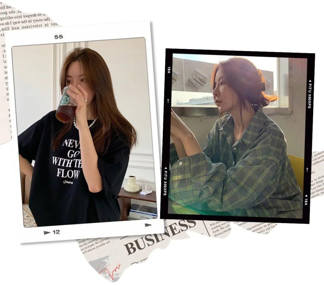 她家风格就是属于慵懒的oversize风格,真的你们去她主页去看就看的出来真的是妥妥的韩式慵懒风,我觉得很适合微胖或者高个子的姐妹。