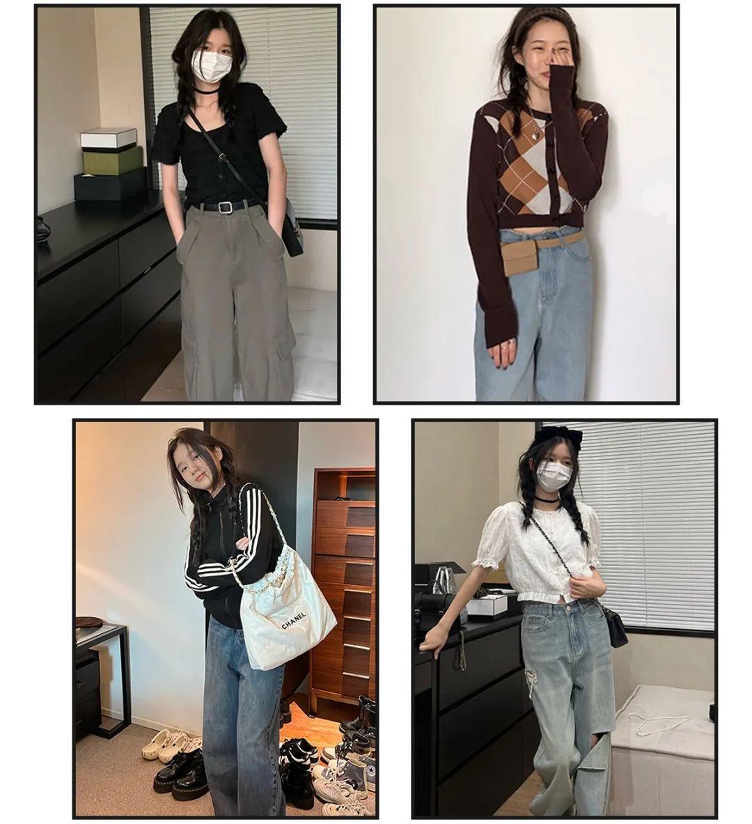 上衣基本都是偏宽松一挂的,基本上是不会挑身材的还能显瘦,日常穿出门也很合适