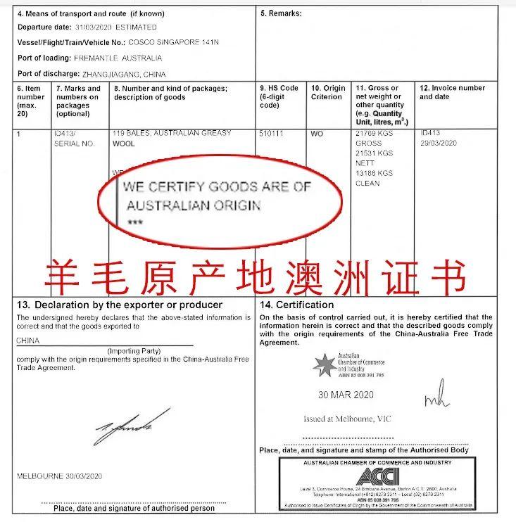 澳洲羊毛原产地证书,来源品牌方