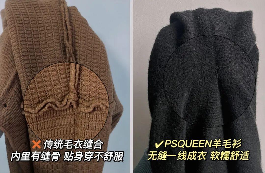 为了让穿着体验更舒适,PSQUEEN特采用了高端Whole Garment全成型技术,即无缝一线成衣。