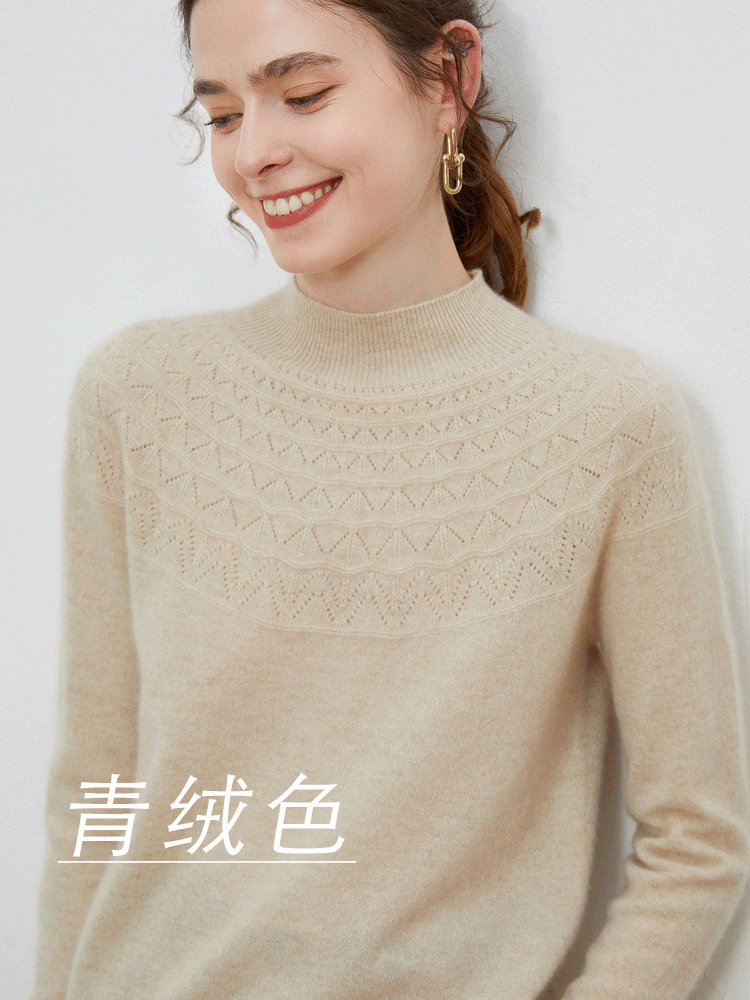 今年这款PSQUEEN半高领镂空羊毛衫,沿用去年羊毛衫材质——澳洲美利奴羊毛,重新进行打版设计,做成半高领样式,手感更柔软,穿着更舒适!