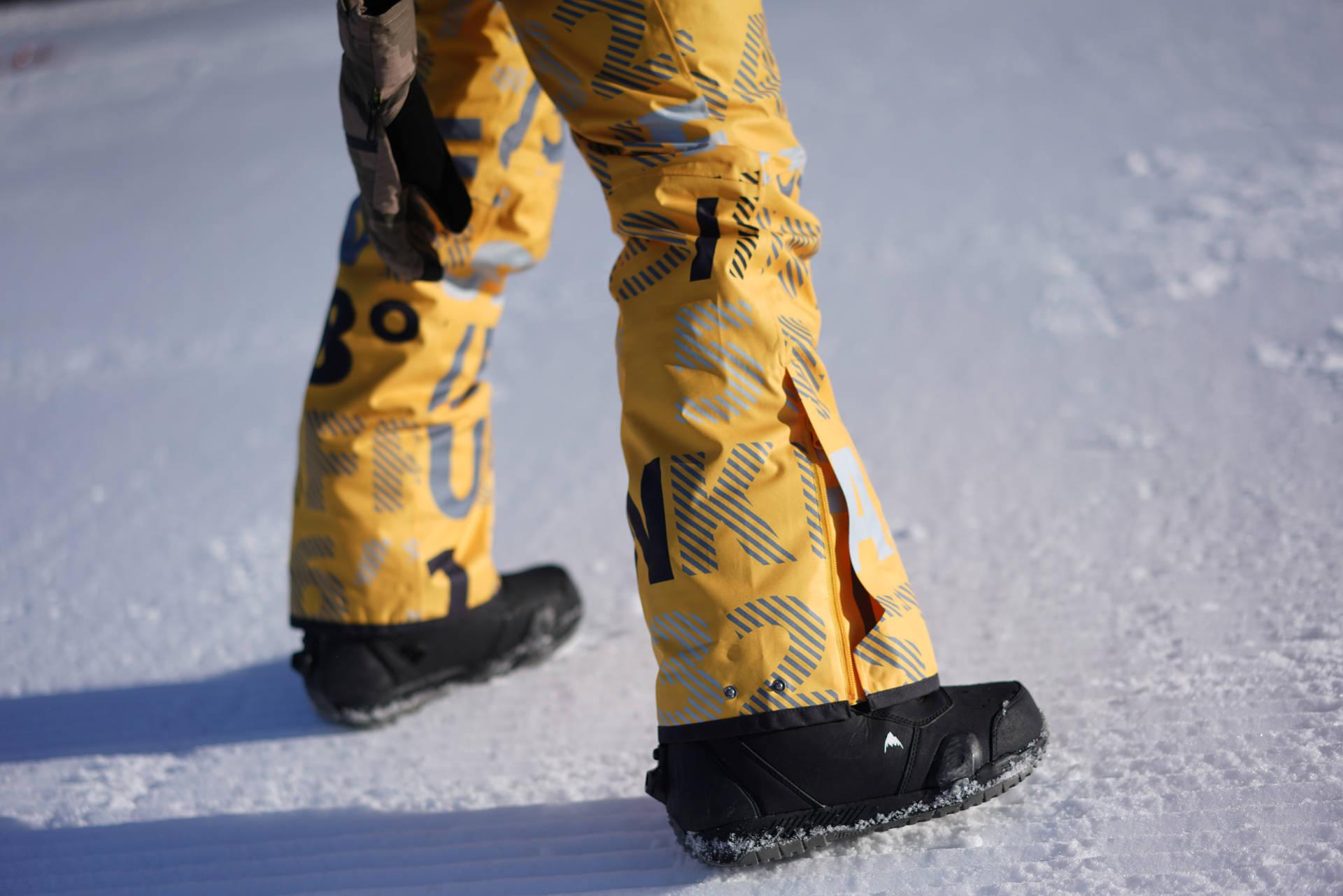 双层裤腿的内层要包在雪鞋的外面,这样不管你是摔倒了还是一脚踩进很深的雪里,它都能雪不会顺着裤腿灌到鞋里。