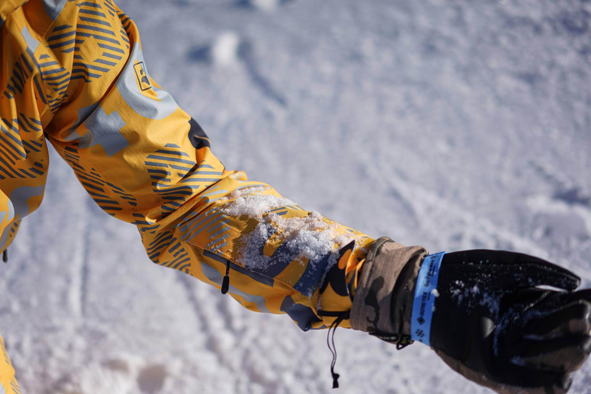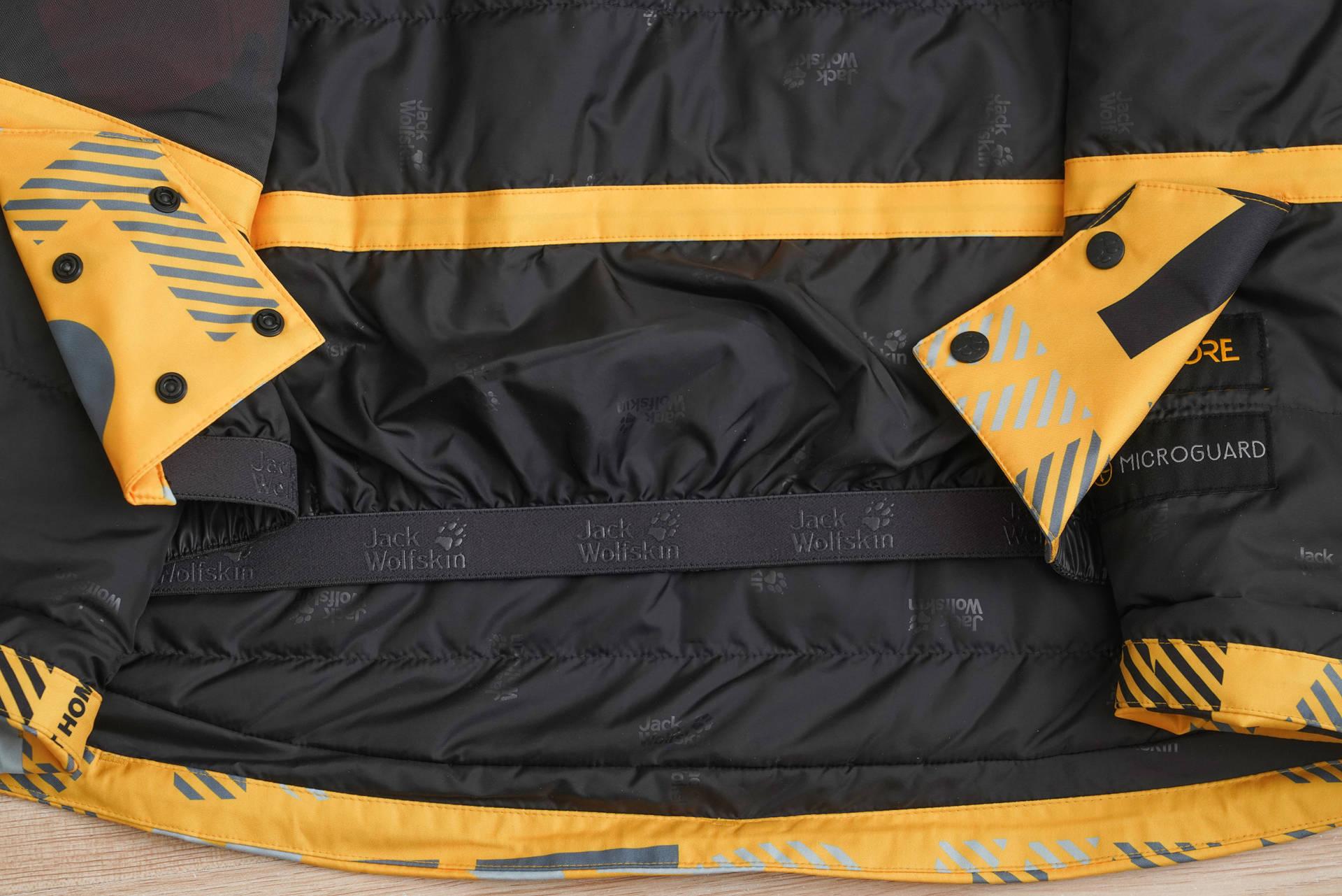 滑雪服和其他冲锋衣一样,重要的参数是防水和透气。这款雪服采用了狼爪自有的Texapore Ecosphere面料。狼爪在户外圈里是一个保护自然追求环保的品牌,Ecosphere是环保再生面料,防水指数达到20000mm水柱压强,它的概念是20000mm高,也就是20米高的水柱压在面料上24小时,从面料渗透通过的水滴不超过3滴,数值已经可观。