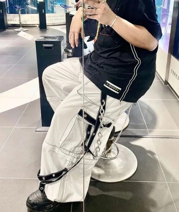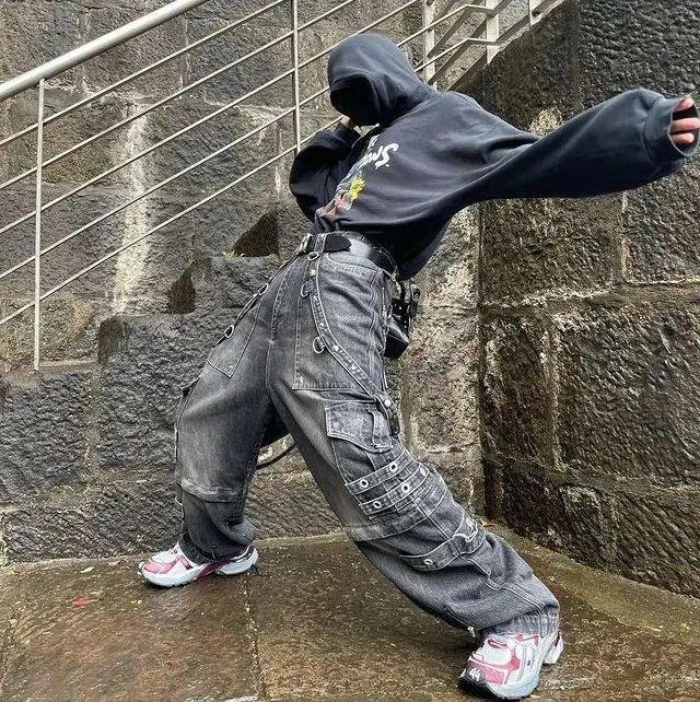 当时欧洲的 Rave 派对,多在地下仓库举办,阔腿、长度拖地、高腰、多口袋等特点的「裤款」,是青年们喜欢的单品,一般会搭配紧身上衣、金属配饰,让参加派对的人看起来很酷,还可以防止丢失唇膏、钥匙;