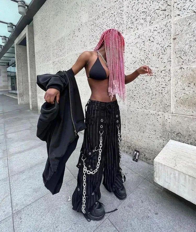 Rave 时尚,近年呈现着回潮局面,在 Balenciaga 等品牌的美学引领下,拥有阔腿等特征的「锐舞裤」,入侵着先锋玩家们的「衣橱」,并引发了@weirdrobotpants 等玩家代表,对更多平替、小众款式的挖掘。
