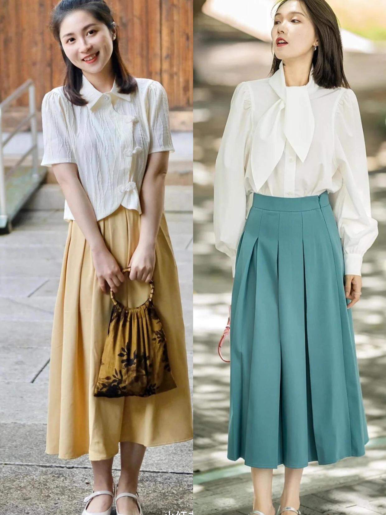 很多小姐姐会担心那些流行的颜色穿在身上容易导致俗气,那大家就可以尝试一下个性化的混搭,比如这些时髦的彩色裙装去搭配上了白色上衣,这样的色彩搭配也的个性呀。