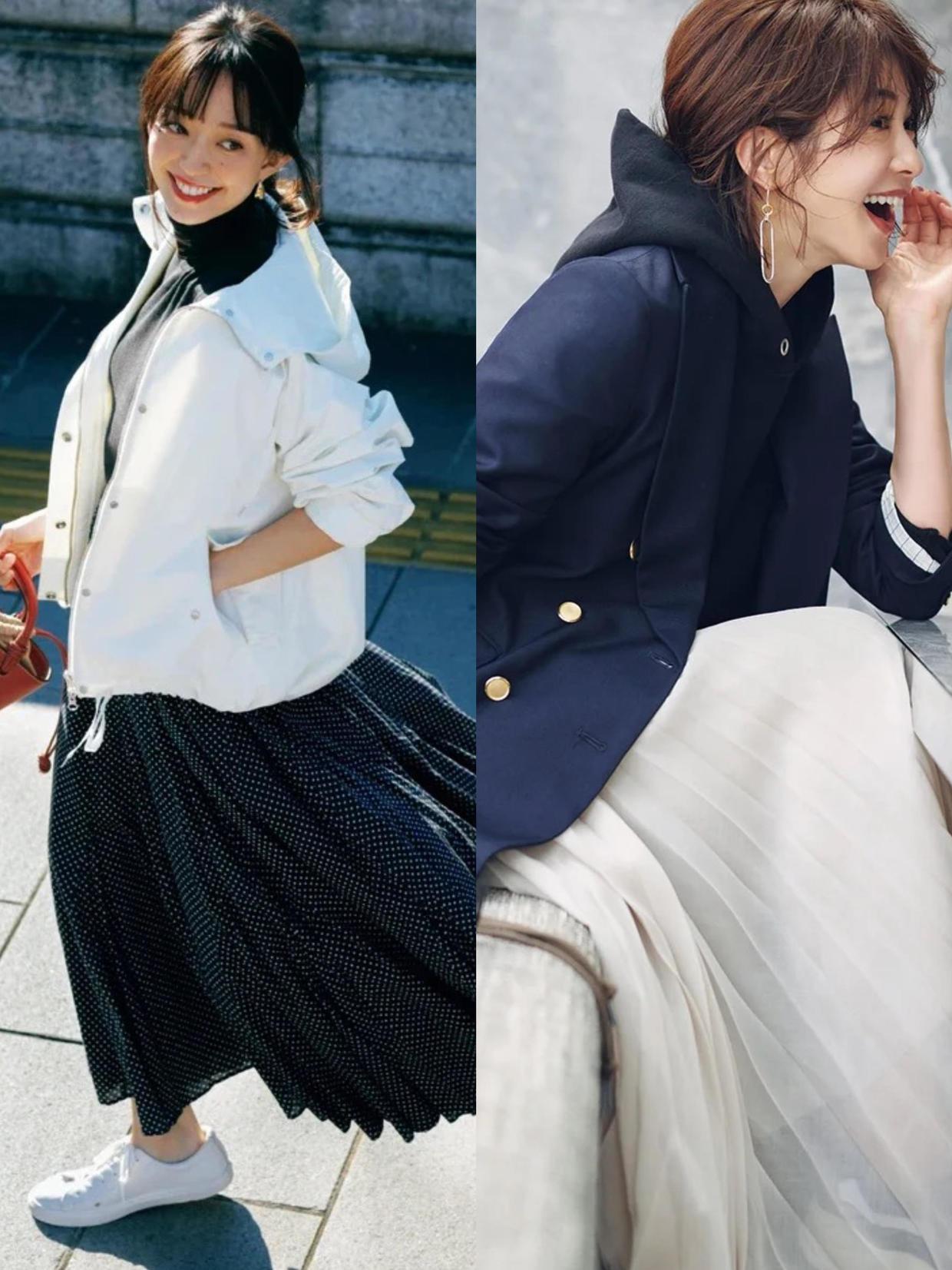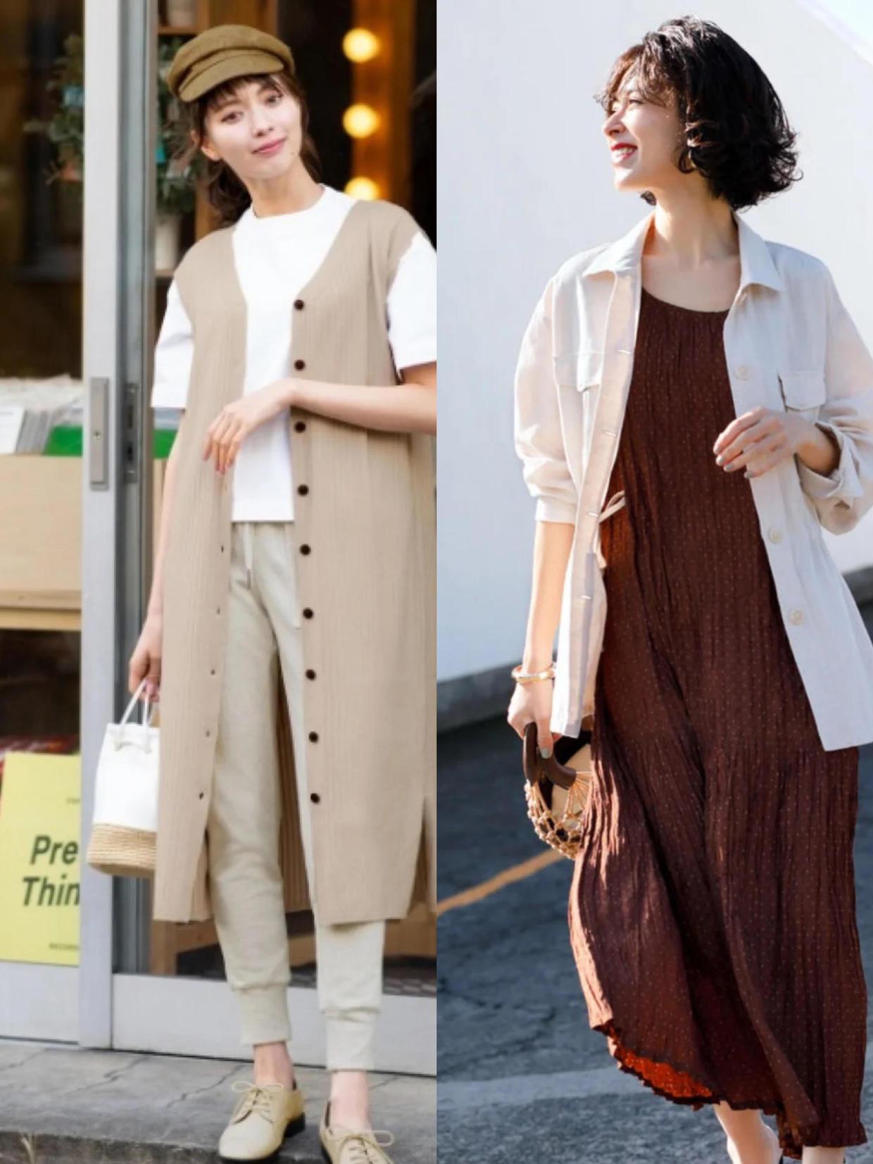 这个时候还可以用这些简单的外套来进行叠穿,你可以选择一件轻薄的风衣外套,也可以选择这种简单的无袖马甲叠穿衬衫和T恤,层次感很强,也能够展现出好身材,因为叠穿搭配相比普通的单穿看上去更丰富,所以我们在穿的时候也要记得选款不能太花哨。