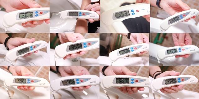 水温的稳定性影响着用户的清洗体验,为了比较十二款产品的水温差距,我们使用温度记录仪来测试中档水温。从测试结果来看,中档水温差别不是很大,就是箭牌水温偏低。由于水流无法完全包裹住探针,笔者认为测试温度要比水流的真实温度要低一些,而且实际使用时温度是比体温要高的。