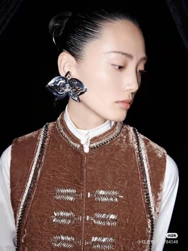 对,这个牌子把古典的东方美学和当代时装融合的很好。他们近用了很美的绒花,我发给大家看看。
