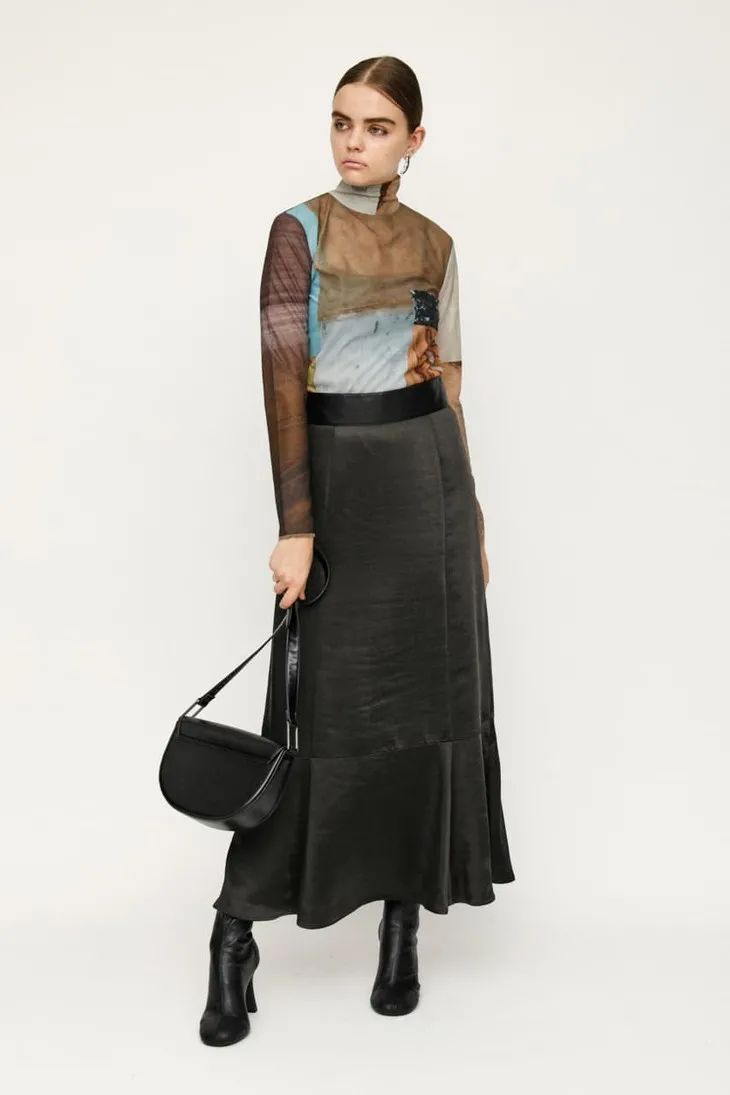 不止服装单品,包包也很出彩。小巧的hobo bag结合深棕色豹纹,复古中带有野性,小众不易撞包!