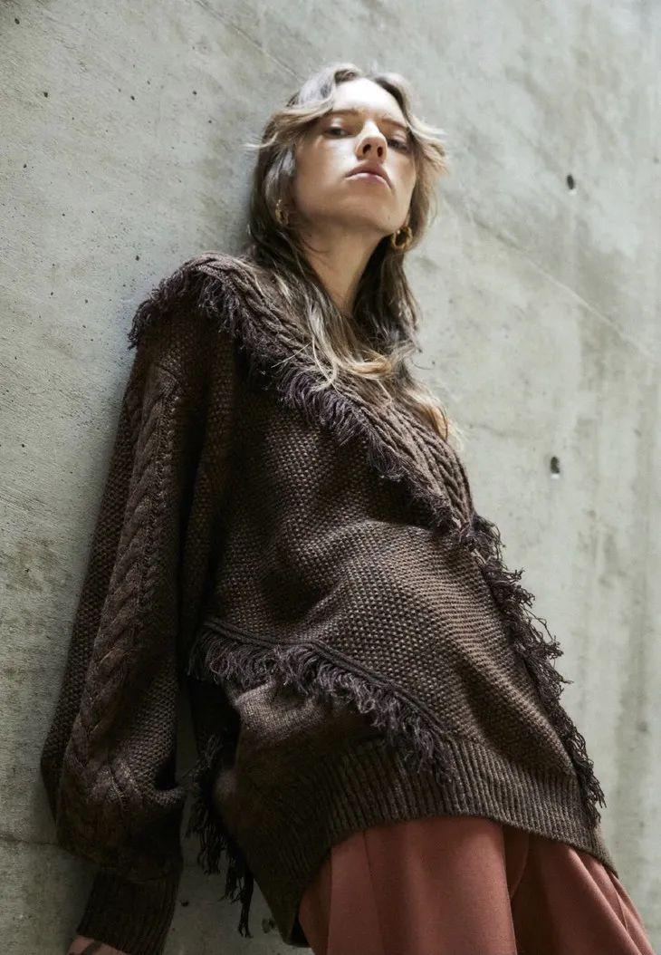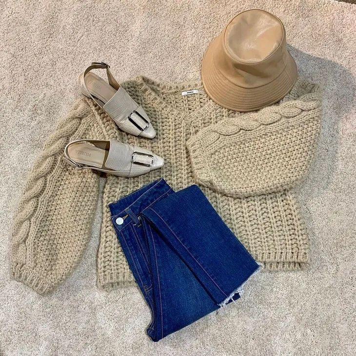 毛衣、长裙配毛绒外套或大衣,加上粽色和燕麦色的大地色系,是经典的日系软妹子们的秋冬穿衣模版。