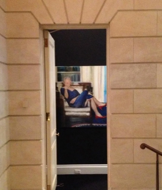 网上流传,克林顿的奇怪的油画,挂在萝莉岛岛主的屋子里面。他穿着红色的鞋子(无法证实,自辨真伪......)