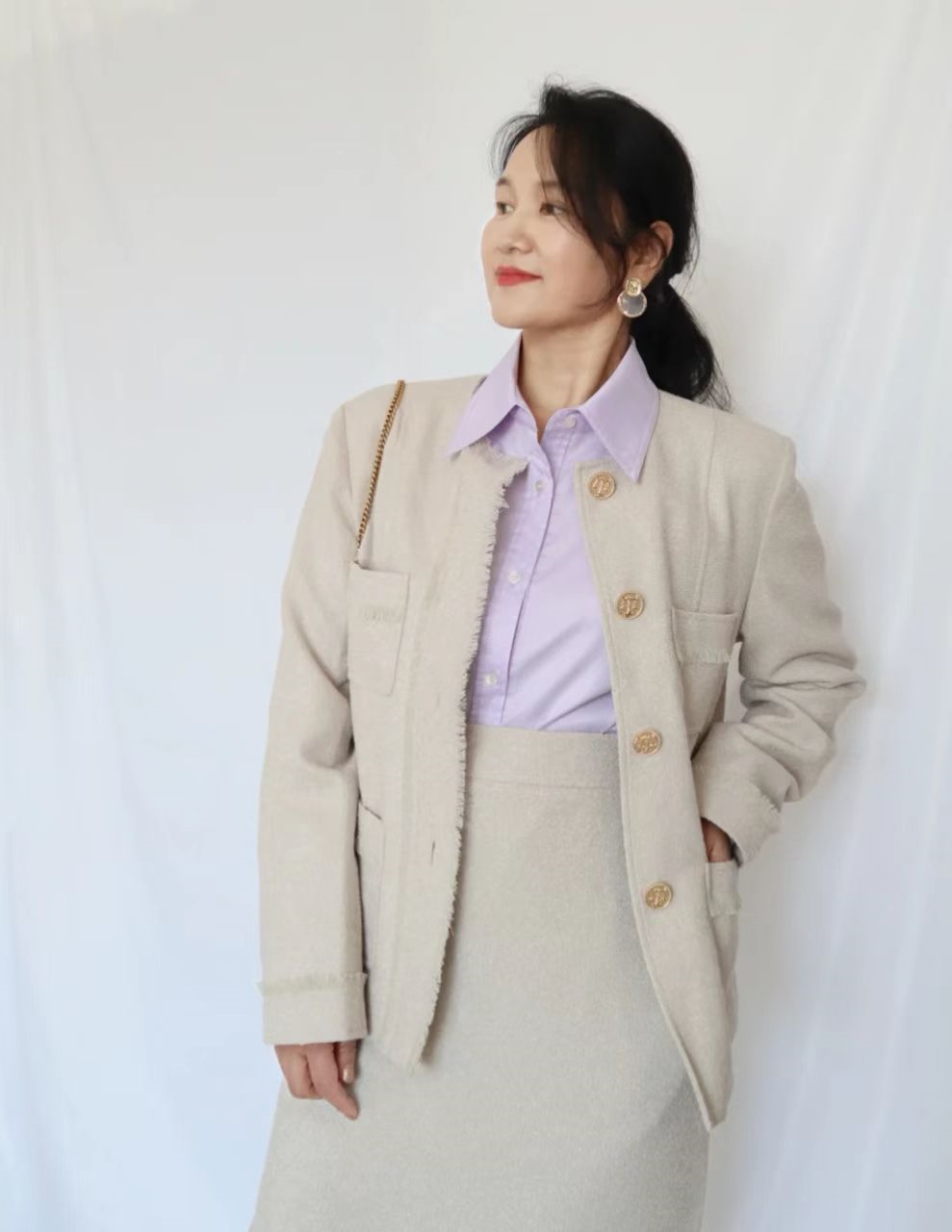 其实这种问题也很好解决,多穿一些无龄感的单品,走成熟风的时候,一身搭配中至少有两件单品颜色或款式上看着是25-50岁穿都能驾驭的。
