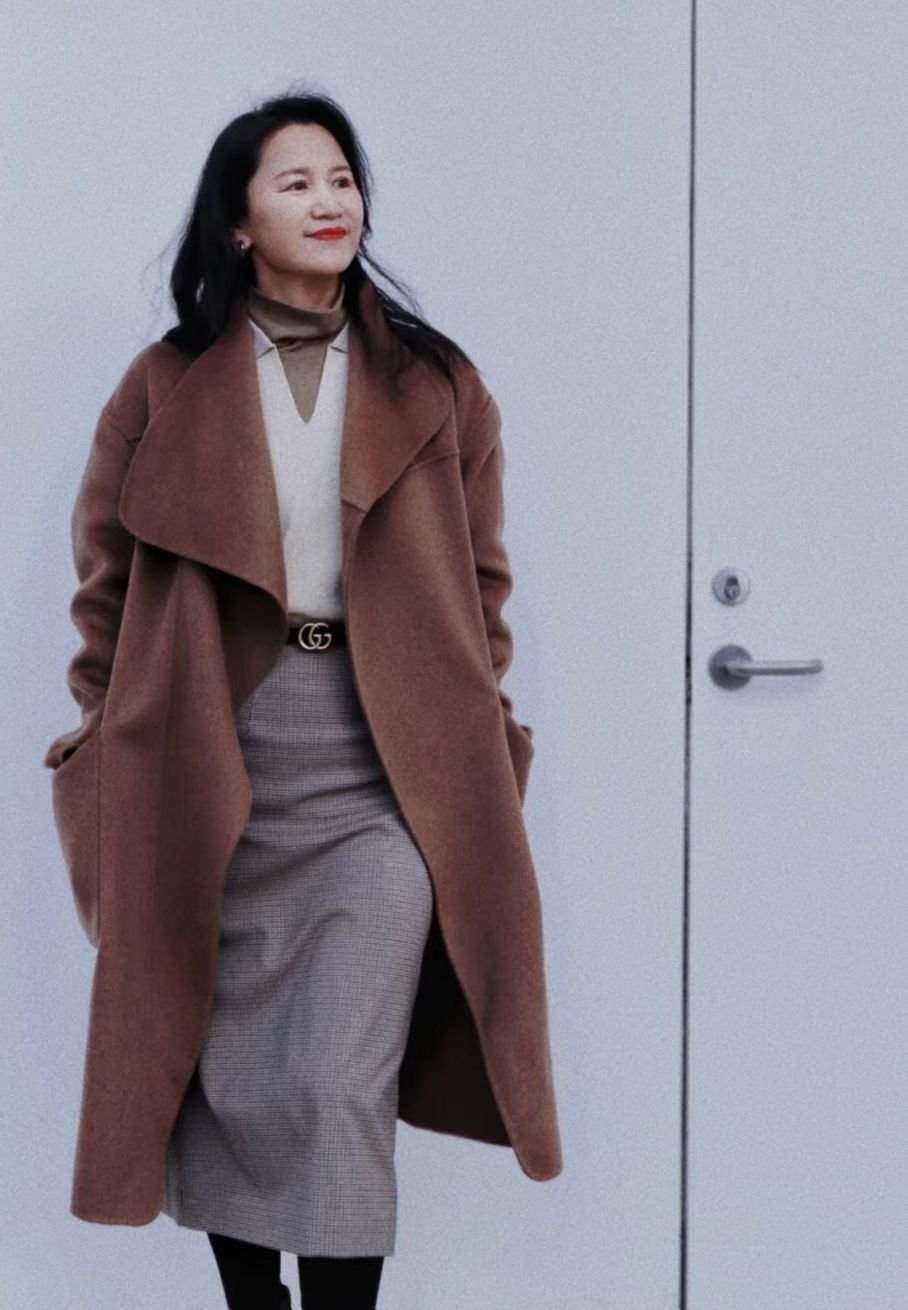 而当你的服饰色调接近,一体感强,就会有种人淡如菊的感觉,气质拉上来了,衣服都跟着变贵。然而谁敢想,就下图这件大衣,其实还不到200块。