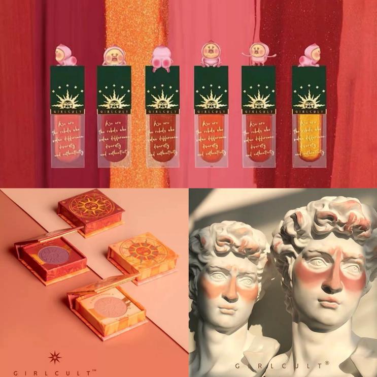 在过去三年,Girlcult构奇先后推出的“GirlcultX屁桃”联名腮红Fuwafuwa、窃梦山海、穿越江户时代、浪漫、樱桃小丸子联名(情绪腮红)、“GirlcultX弗里达”等多个系列彩妆产品也在强化消费者对品牌形象和定位的认知。