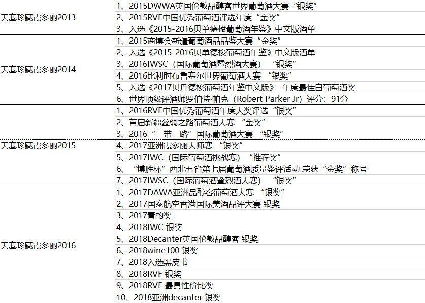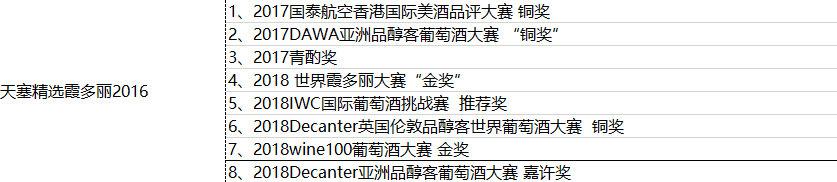 天塞霞多丽所获部分奖项