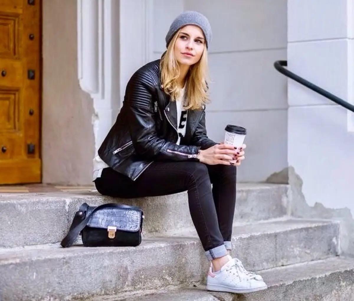 而在秋冬季,提高腰线直接有的方法就是上短下长的搭配方式。利用短上衣将腰线上移,视觉上可以轻松穿出大长腿的既视感。