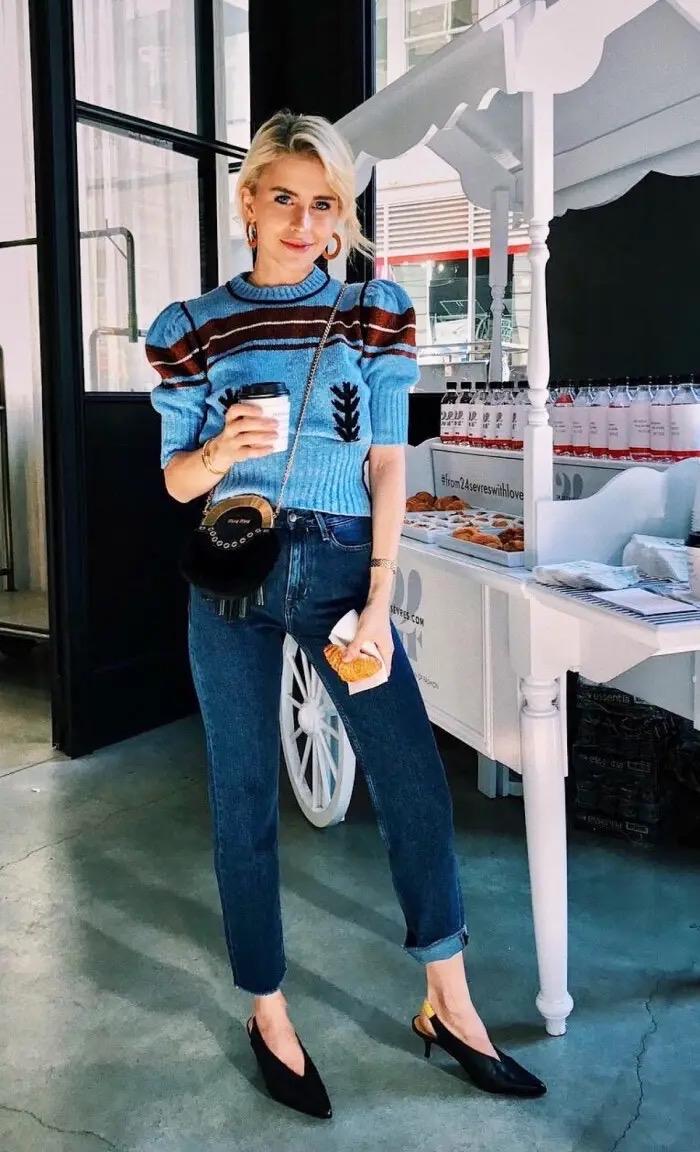 所以无论选择什么样的款式,提高腰线永远是她们穿搭中不可忽视的技巧。当然,提高腰线不仅有助于显高的功,还有助于调整身材比例。有了好的身材比例,即使偏矮的身高也会给人显高的既视感。