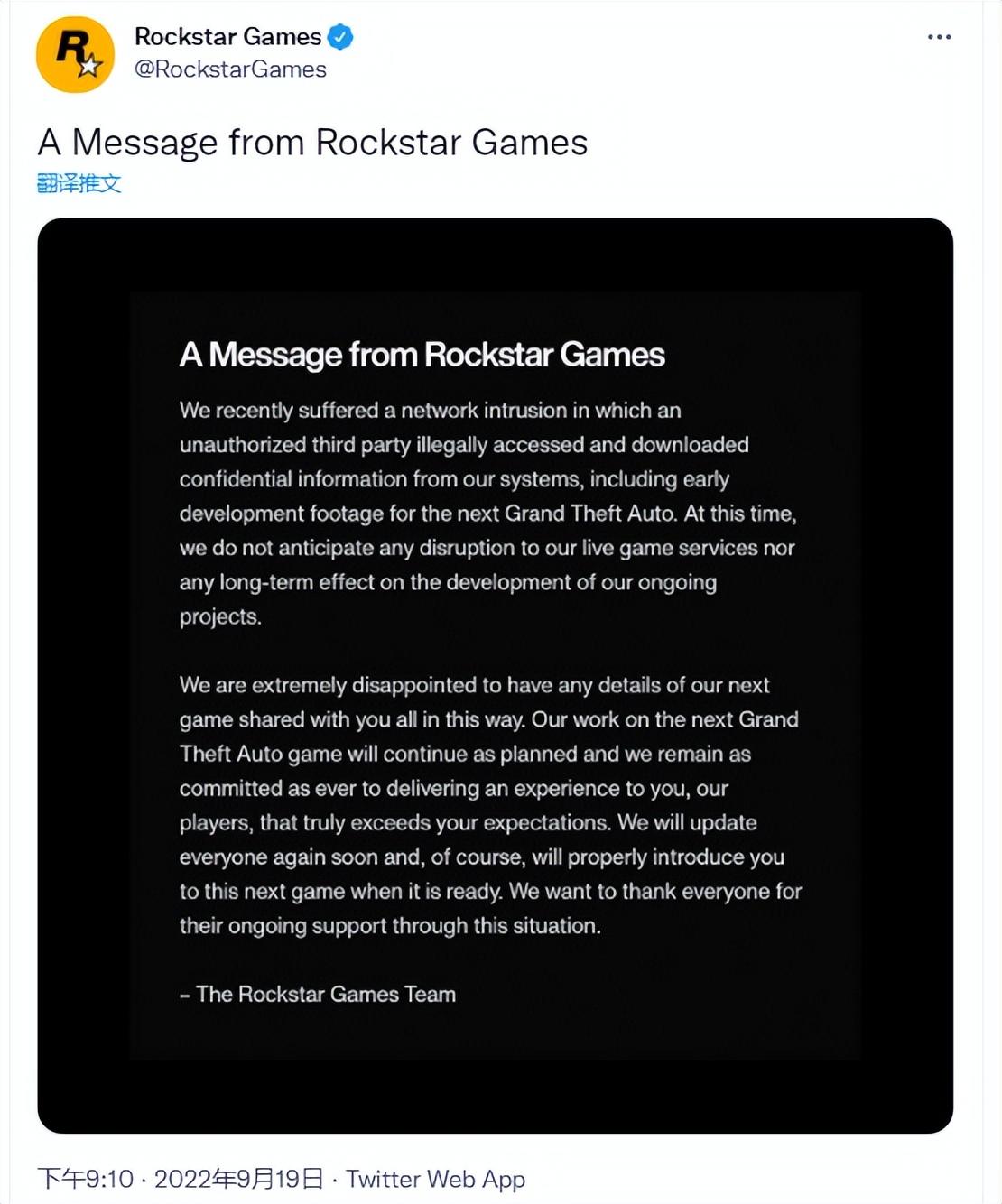而R星不紧不慢的官宣似乎也印证了这种想法,直到昨晚九点,才正式做出了回应,表示泄露不会对游戏的开发造成任何影响。