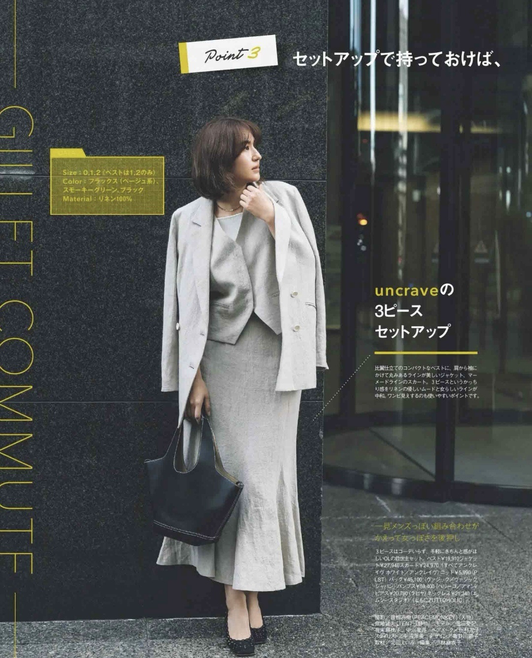 卡其色马甲+手提包+高腰裤