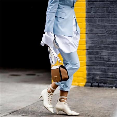穿优雅的长裤和高跟鞋。