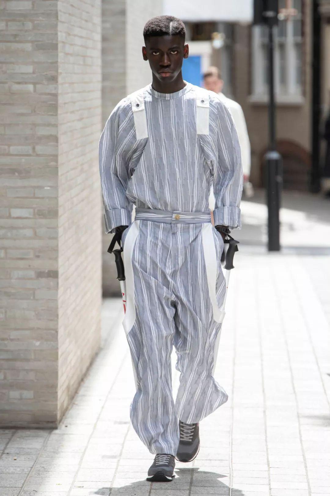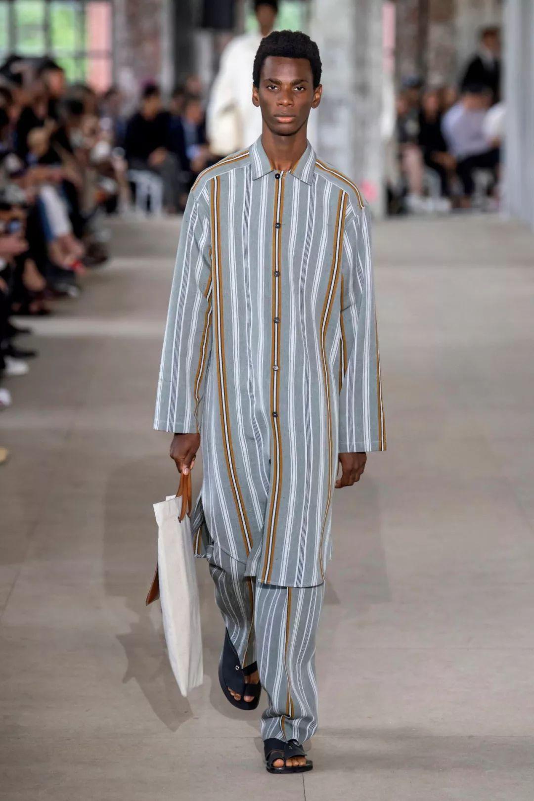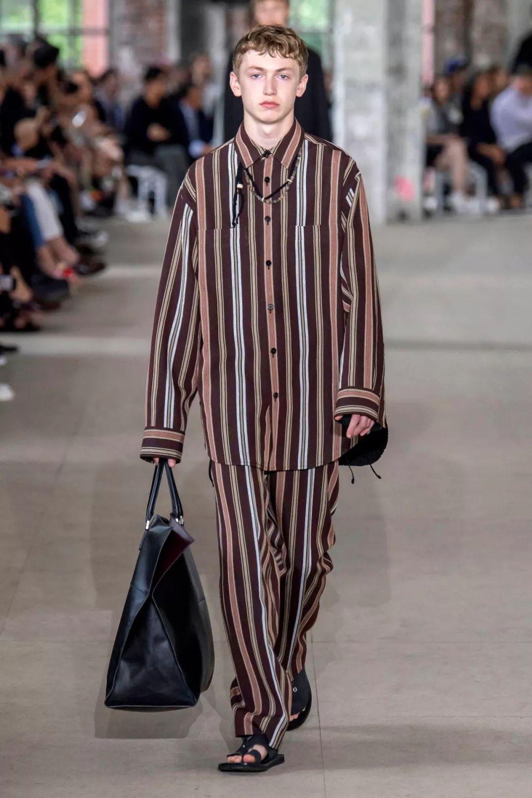 细条纹和睡衣服装趋势脱离正装,用于超大休闲服装时显得新潮现代。