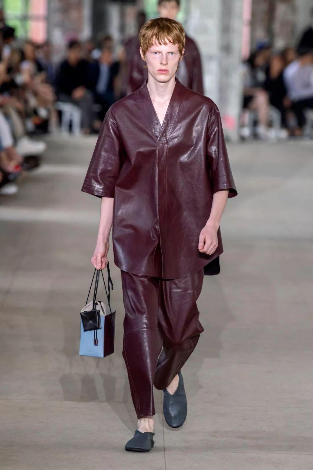 皮革在2020春夏T台上占据越来越重要的地位,建议打造更柔软、延展性更好的外套和单件服装。