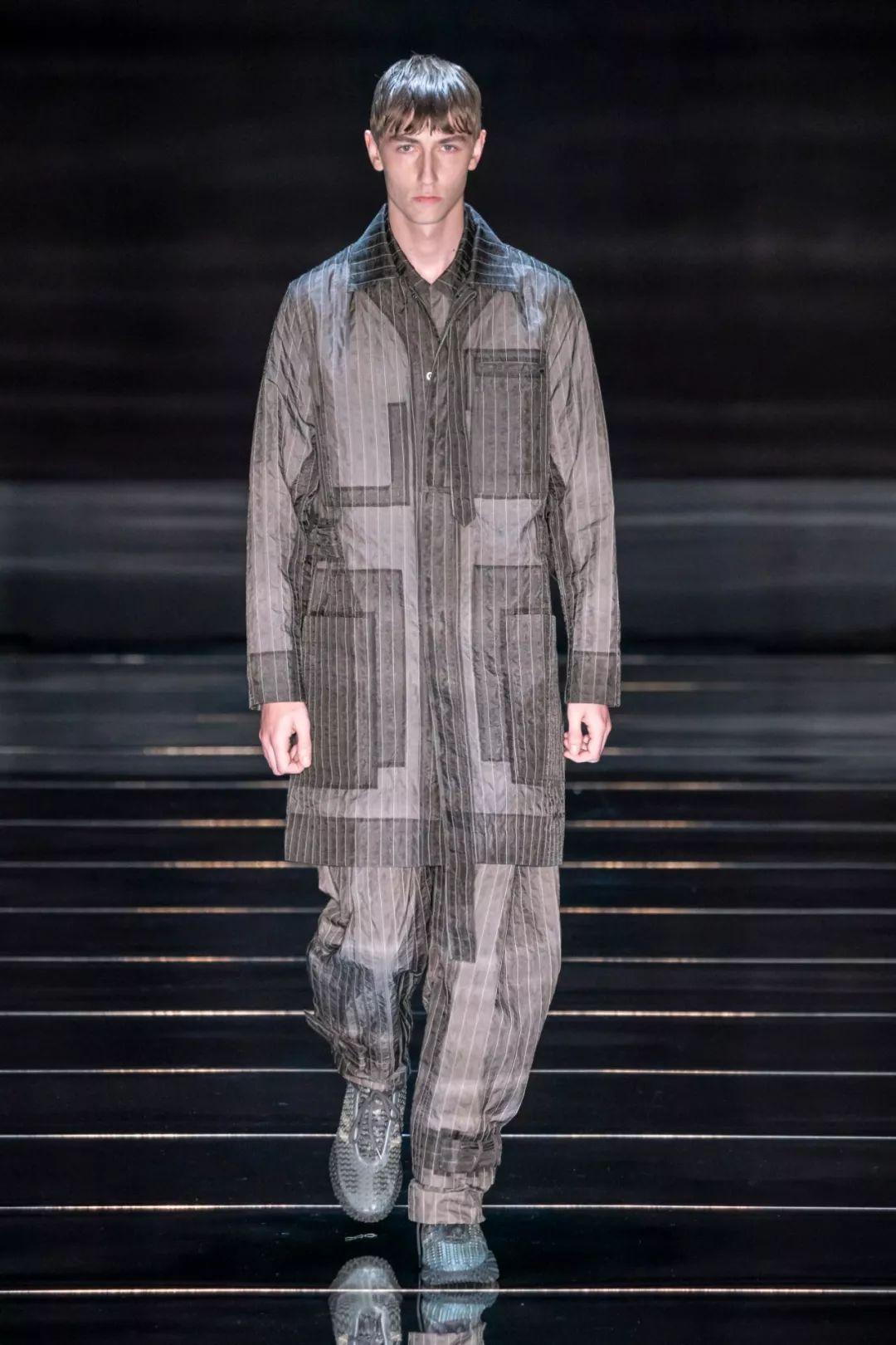 3.超轻面料、薄纱、半透明质地的科技防护性面料之前只出现于前卫年轻市场,如今在正装市场也常常可以看到它们的身影,采用了更商业化的设计。