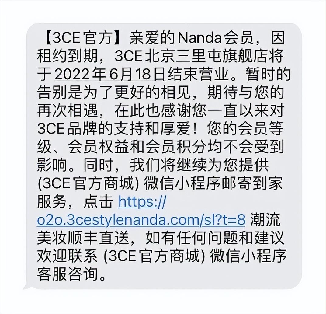 “3CE在北京三里屯的首店停止营业了。”