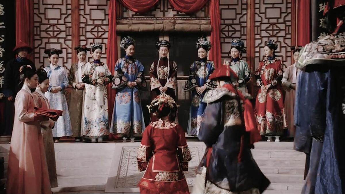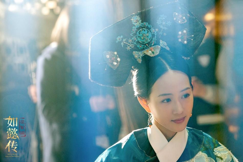 这个造型出现在惢心结婚时,海兰作为如懿要好的闺蜜,来送她忠心的宫女出嫁,甚至半个后宫的娘娘们都来了。