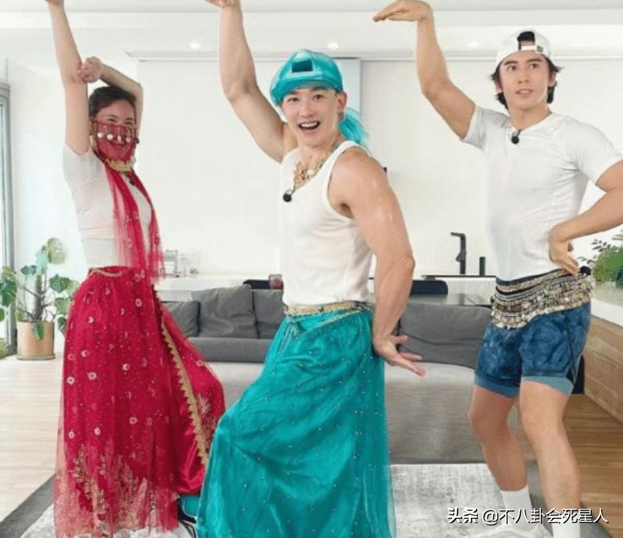 而钟丽缇的老公张伦硕,与刘畊宏是关系不错的好友,他近日则是出现在了刘畊宏的直播间,和刘畊宏夫妻俩一起穿着异域服装跳操。