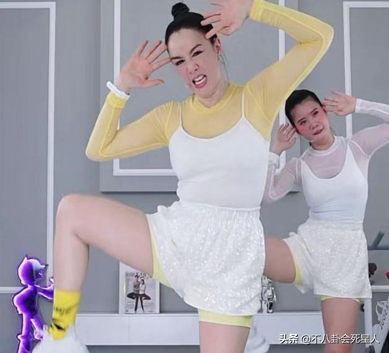 前段时间,刘畊宏因直播跳操而人气大增,不少明星也竞相仿,其中就包括了钟丽缇。她近就开始在直播间跳操,之前她身穿淡黄色上衣加白色运动短裤,动作也是十分卖力,有时候看着表情都狰狞了。