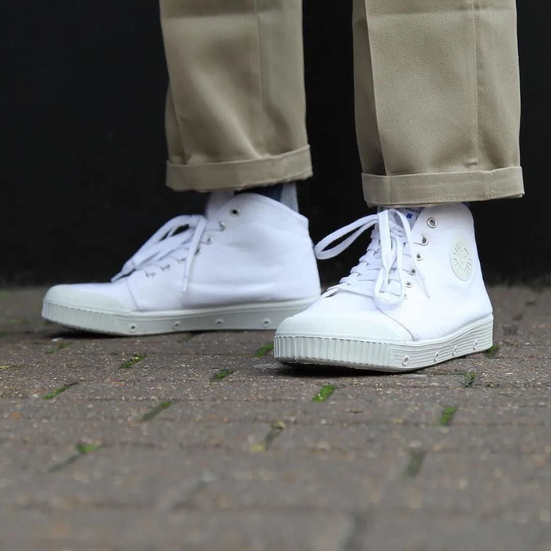 披头士第11张专辑《Abbey Road》四个人走斑马线的封面照片中,约翰·列侬穿的就是Spring Court经典款白色帆布鞋,简单干净,跟西装也能融合。