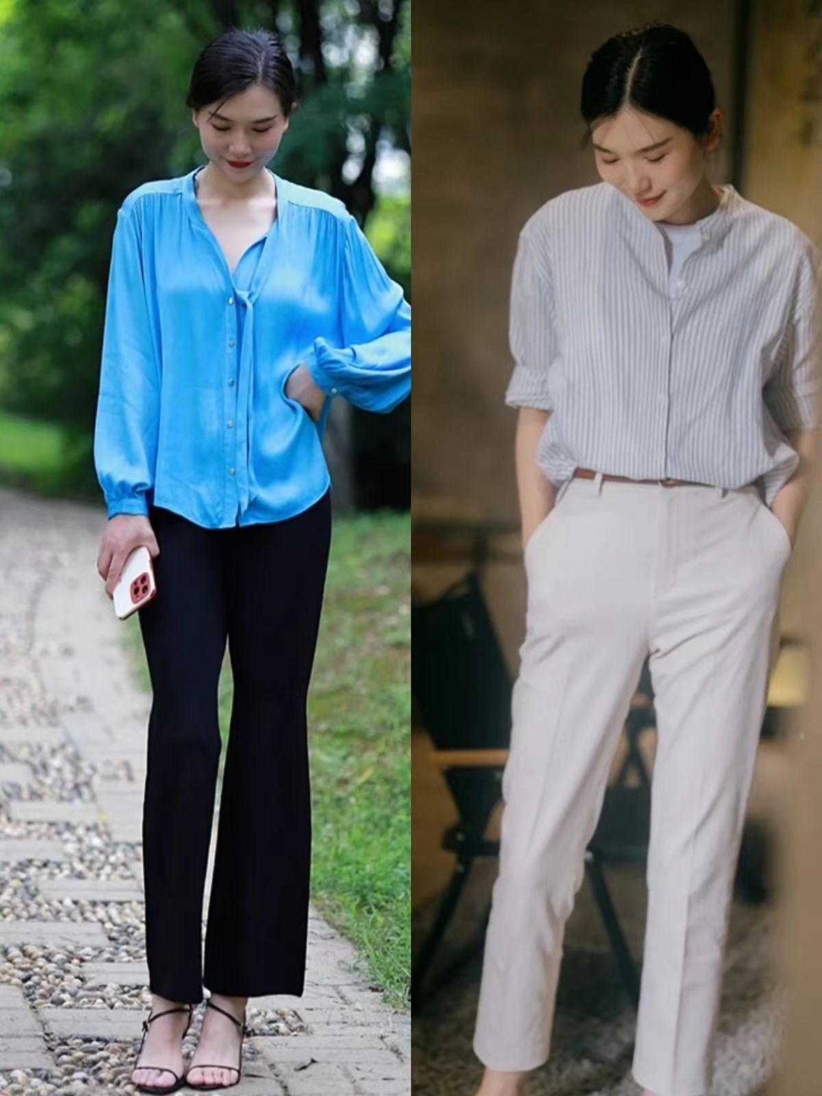 微喇西裤、九分烟管西裤与衬衫都很般配,简约大方又时尚利落,从配色入手也是提升细节感的有方式。