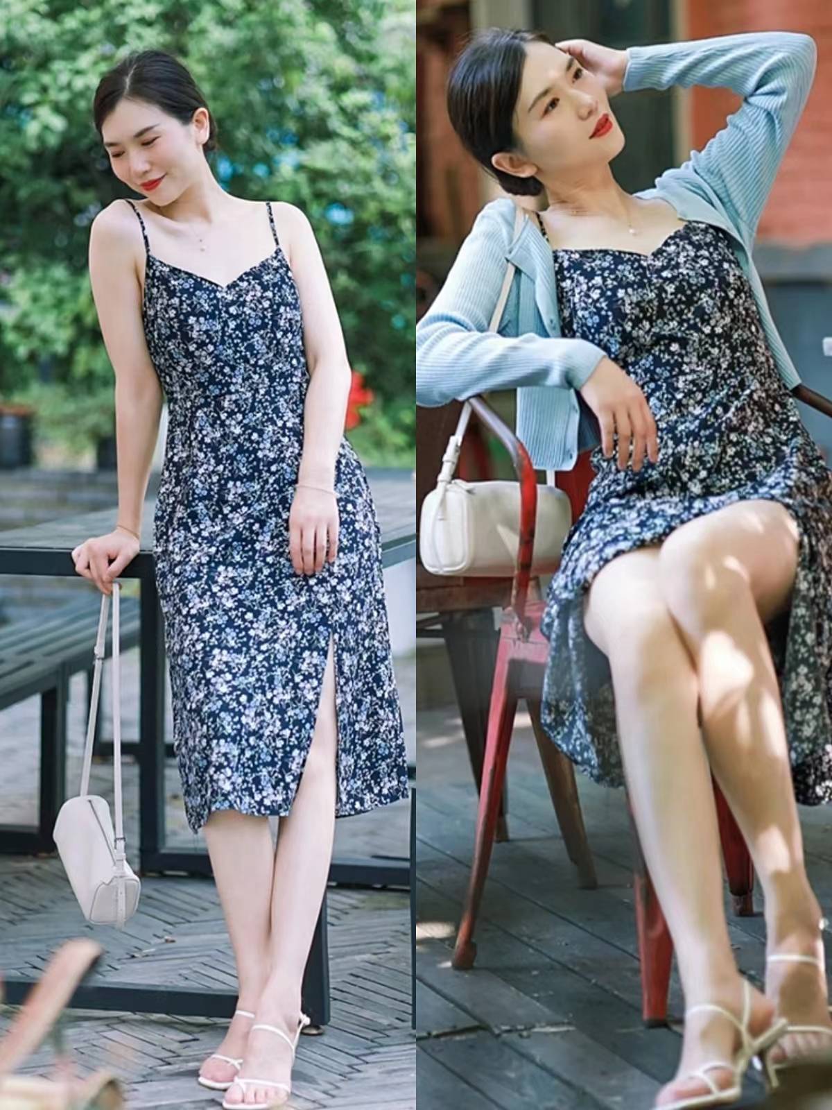 不想将基础款穿得太沉闷,那么中年女人还要借助露肤设计提升透气感,比如优先用无袖上衣匹配长裤、长裙,用一片式开衩裙凹造型。