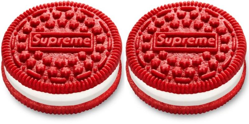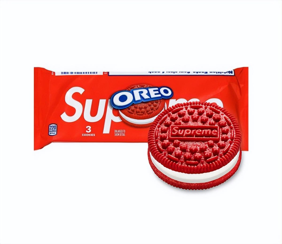 Supreme与奥利奥在2020年推出了限量版联名产品。这是印有Supreme标志的红色奥利奥饼干。