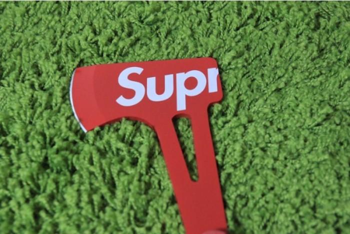 从手斧的外壳到手斧的手柄,再到刀片,全部涂成红色,刀片上刻有Supreme标志。