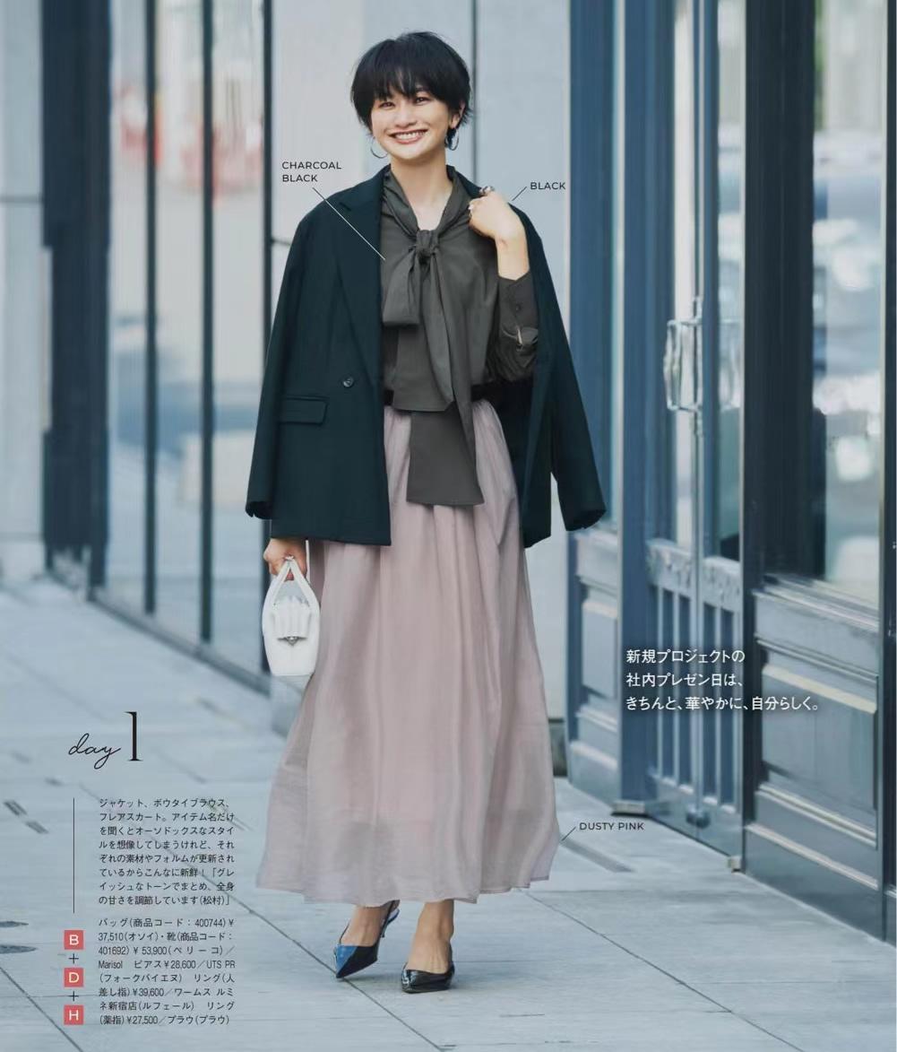 打造优雅风,柔和女人味自然贯穿其中。即使是黑白灰等基础色,也要附带华丽设计才罢休。要不然,如何温柔高雅?