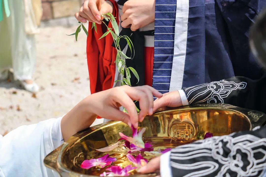 图为汉服爱好者,在三月初三举行“祓禊仪式”,淋香盥沐,重现上巳古风的情景。上巳,指的是干支纪日历法中三月的第一个巳日,所以又称三巳、元巳、初巳。