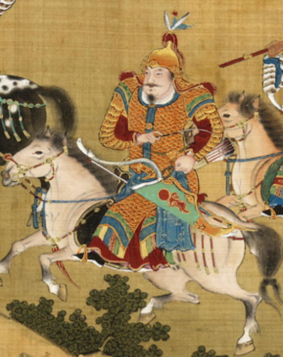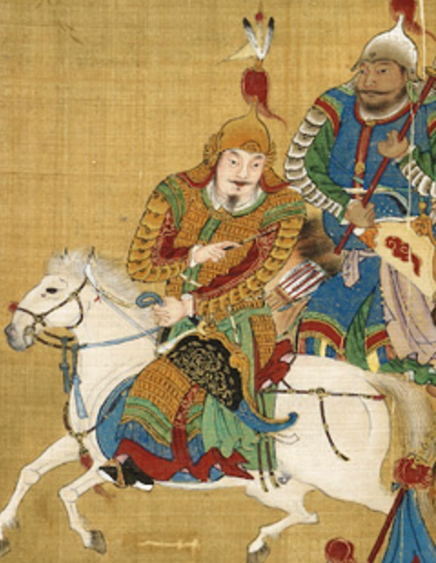 主角是明神宗万历皇帝,就是朝鲜人念念不忘的“功同再造”的神庙爷。大约在全图右侧四分之一的位置上。