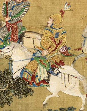 出警图画的是在陆地骑马出行的场景,入跸图画的是在坐船回銮的场景,我们关注的是冠服,所以就只看出警图。而且因为原图过于巨大,所以只能一点点地截图。以期重新我华夏风采!