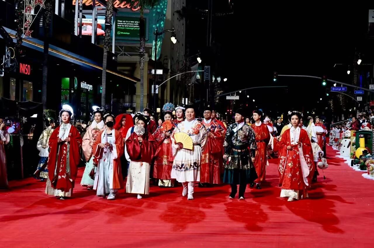 不得不承认,今年的好莱坞圣诞大游行实在令人目不暇接,不仅有传统的舞狮表演,还有丰富多元的汉服造型,其中不少搭配都别具气质。